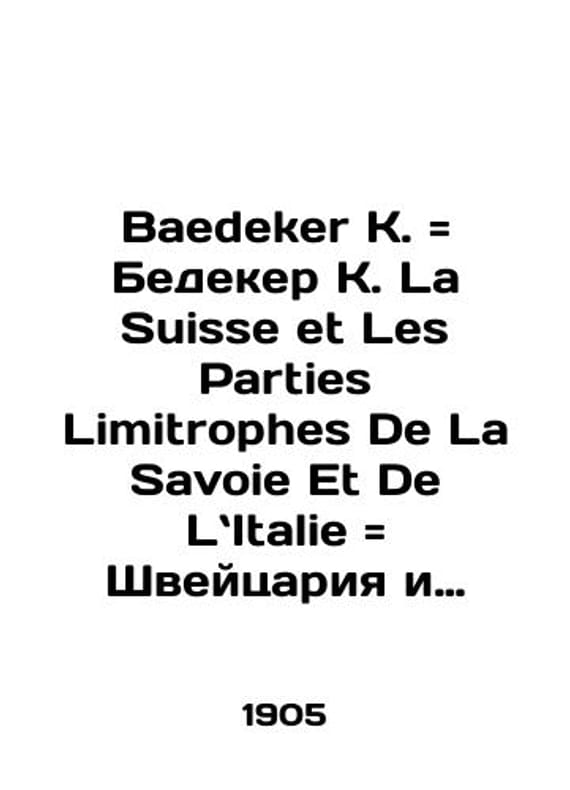 Baedeker K. Bedeker K. La Suisse et Les Parties Limitrophes De La Savoie et De La Italie Switzerland and neighboring Savoie and Italy. In French /Baedeker K. Bedeker K. LaSuisseet Les Parties Limitrophes De La Savoie Et De LItalie Shveytsariya i Sopredelnye Savoyya i Italiya. In French .Guide. With 63 maps, 17 plans and 11 panoramas. In the French language Leipzig Karl Baedeker 1905, XXXII, 568 p. We have thousands of titles and often several copies of each title may be available. Please feel free to contact us for a detailed description of the copies available. SKUalb8636b72390038303