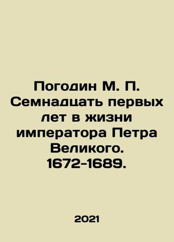 Pogodin M.P. Seventeen years in the life of Emperor Peter the Great. 1672-1689. In Russian /Pogodin M. P. Semnadtsat pervykh let v zhizni imperatora Petra Velikogo. 1672-1689. In Russian. Entry to the post of L. E. Morozova. M. Kuchkovo field 2021. 416 p. We have thousands of titles and often several copies of each title may be available. Please feel free to contact us for a detailed description of the copies available. SKUalb8643932d2bad4a5b