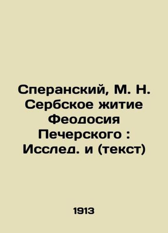 Speransky, M. N. Serbian Life of Feodosiy Pechersky: Issled. and (Text) In Russian /Speranskiy, M. N. Serbskoe zhitie Feodosiya Pecherskogo: Issled. i (tekst) In Russian. Moscow:: Imp. History and Antiquities of Russia at Moscow University, 1913. 19 p. We have thousands of titles and often several copies of each title may be available. Please feel free to contact us for a detailed description of the copies available. SKUalb8655100d6a1ec2a7