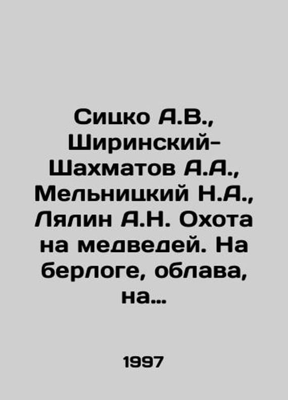 Sitsko A.V., Shirinsky-Shakhmatov A.A., Melnitsky N.A., Lyalin A.N. The hunt for bears In Russian /Sitsko A.V., Shirinskiy-Shakhmatov A.A., Melnitskiy N.A., Lyalin A.N. Okhota na medvedey. Na berloge, oblava, na ovsakh, s laykami. Spravochnik. In Russian. Series: Hunter. M. Ruchenkin Publishing House. 1997. 349 p. We have thousands of titles and often several copies of each title may be available. Please feel free to contact us for a detailed description of the copies available. SKUalb86664af08e4f02db