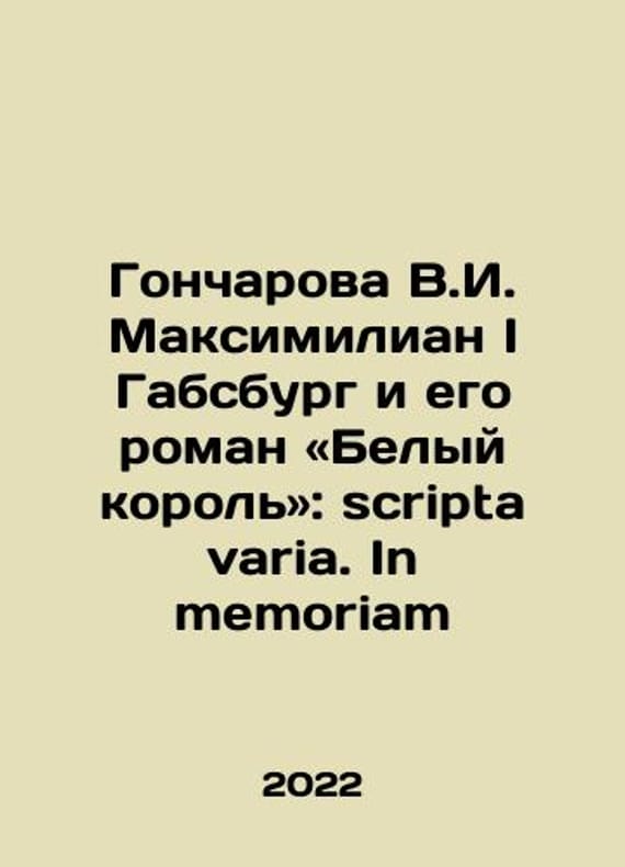 Goncharova V.I. Maximilian I of Habsburg and his novel The White King: scripta varia. In memoriam In Russian /Goncharova V.I. Maksimilian I Gabsburg i ego roman «Belyy korol»: scripta varia. In memoriam In Russian. Rev. Editor A.A. Pavlov St. Petersburg Center for Humanitarian Initiatives 2022 302s. We have thousands of titles and often several copies of each title may be available. Please feel free to contact us for a detailed description of the copies available. SKUalb8668c8c8c6bfb14f