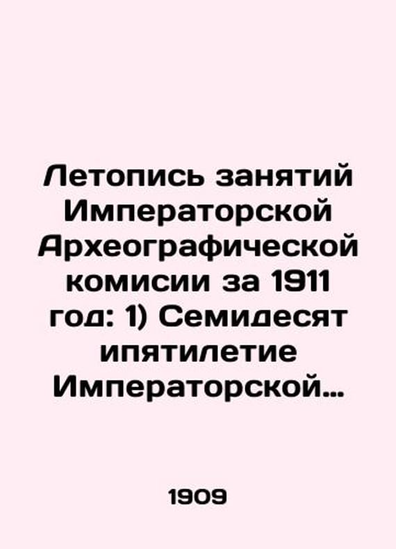 Chronicle of the Practice of the Imperial Archaeographic Commission for 1911: 1) Seventy-fifth Anniversary of the Imperial Archaeographic Commission, 1834-1909 In Russian /Letopis zanyatiy Imperatorskoy Arkheograficheskoy komisii za 1911 god: 1) Semidesyatipyatiletie Imperatorskoy Arkheograficheskoy komissii, 1834-1909. 2) Izvlecheniya iz protokolov Imperatorskoy Arkheograficheskoy komissii za 1911 god Issue twenty-four. Edited by the ruler of affairs, V.G. Druzhinin, St. Petersburg: Typography of M.A. Aleksandrov, Typography of the Main Directorate of Udlot 1909-1912. We have thousands of titles and often several copies of each title may be available. Please feel free to contact us for a detailed description of the copies available. The delivery of this book might be delayed beyond the usual timeframe due to extended processing and preparation before shipment, and faster shipping options are not offered. Please inform us if you need the order by a certain date or have a deadline.SKUalb86719468fe745305