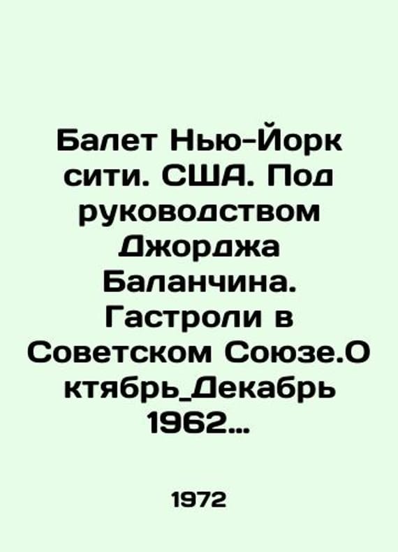 Ballet New York City. USA. Under the direction of George Balanchine. Touring in the Soviet Union. October _ December 1962. Moscow, Leningrad, Kiev, Tbilisi, Baku and Program of the performance in Leningrad, Leningrad, Leningrad DK, Tuesday, November 6, 1962. In Russian /Balet Nyu-York siti. SShA. Pod rukovodstvom Dzhordzha Balanchina. Gastroli v Sovetskom Soyuze.Oktyabr_Dekabr 1962 goda.Moskva,Leningrad,Kiev,Tbilisi,BakuandProgrammka spektaklya v Leningrade,DK im.Lensoveta,Vtornik,6 noyabrya 1962 g. M USSR State Concert 1972. We have thousands of titles and often several copies of each title may be available. Please feel free to contact us for a detailed description of the copies available. SKUalb8682be6bd3c0512a.