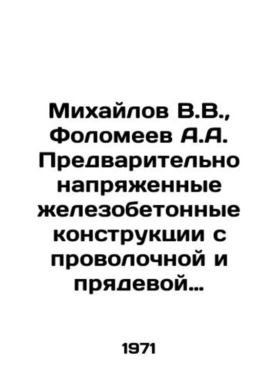Mikhailov V.V., Folomeev A.A. Prestressed reinforced concrete structures with wire and strand reinforcement. In Russian /Mikhaylov V.V., Folomeev A.A. Predvaritelno napryazhennye zhelezobetonnye konstruktsii s provolochnoy i pryadevoy armaturoy. M Stroyizdat 1971. We have thousands of titles and often several copies of each title may be available. Please feel free to contact us for a detailed description of the copies available. SKUalb8703927fdaa45e10.