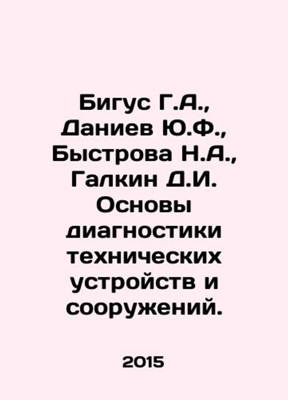 Bigus G.A., Daniev Yu.F., Bystrova N.A., Galkin D.I. Fundamentals of diagnostics of technical devices and structures. In Russian /Bigus G.A., Daniev Yu.F., Bystrova N.A., Galkin D.I. Osnovy diagnostiki tekhnicheskikh ustroystv i sooruzheniy. In Russian. Bauman Moscow State Technical University, 2015, 445s. We have thousands of titles and often several copies of each title may be available. Please feel free to contact us for a detailed description of the copies available. SKUalb8720358a58157204