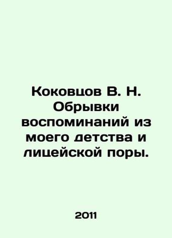 V.N. Kokovtsov: Fragments of memories from my childhood and lyceum. In Russian /Kokovtsov V. N. Obryvki vospominaniy iz moego detstva i litseyskoy pory.M. The Russian Way 2011.We have thousands of titles and often several copies of each title may be available. Please feel free to contact us for a detailed description of the copies available. SKUalb874a64b7b04e4187.