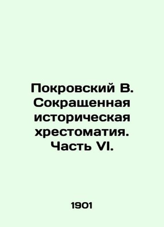 Pokrovsky V. Abbreviated Historical History. Part VI. In Russian /Pokrovskiy V. Sokrashchennaya istoricheskaya khrestomatiya. Chast VI. M. Printing by G. Lissner and A. Geschel. 1901. We have thousands of titles and often several copies of each title may be available. Please feel free to contact us for a detailed description of the copies available. SKUalb87f4874f55c85a50.