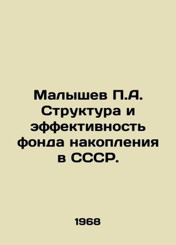 P.A. Malyshev Structure and Efficiency of the Savings Fund in the USSR. In Russian /Malyshev P.A. Struktura i effektivnost fonda nakopleniya v SSSR. In Russian. M. Thought. 1968. 352 p. We have thousands of titles and often several copies of each title may be available. Please feel free to contact us for a detailed description of the copies available. SKUalb87fe972e41daa893