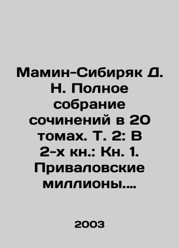 Mamin-Sibiryak D. N. Complete collection of essays in 20 volumes. Vol. 2: In Book 2: Book 1. The Privalovskoye Millions. The Bakharevs Family (Handwritten version): Book 2. The Privalovskoye Millions In Russian /Mamin-Sibiryak D. N. Polnoe sobranie sochineniy v 20 tomakh. T. 2: V 2-kh kn.: Kn. 1. Privalovskie milliony. Semya Bakharevykh (Rukopisnyy variant): Kn. 2. Privalovskie milliony. Rukopisnye redaktsii i podgotovitelnye materialy. Under the general editorship of G. K. Shchennikov. Ekaterinburg Bank of Cultural Information 2003-2006. 744 and 600 p. We have thousands of titles and often several copies of each title may be available. Please feel free to contact us for a detailed description of the copies available. SKUalb882d3a413caa23ba.