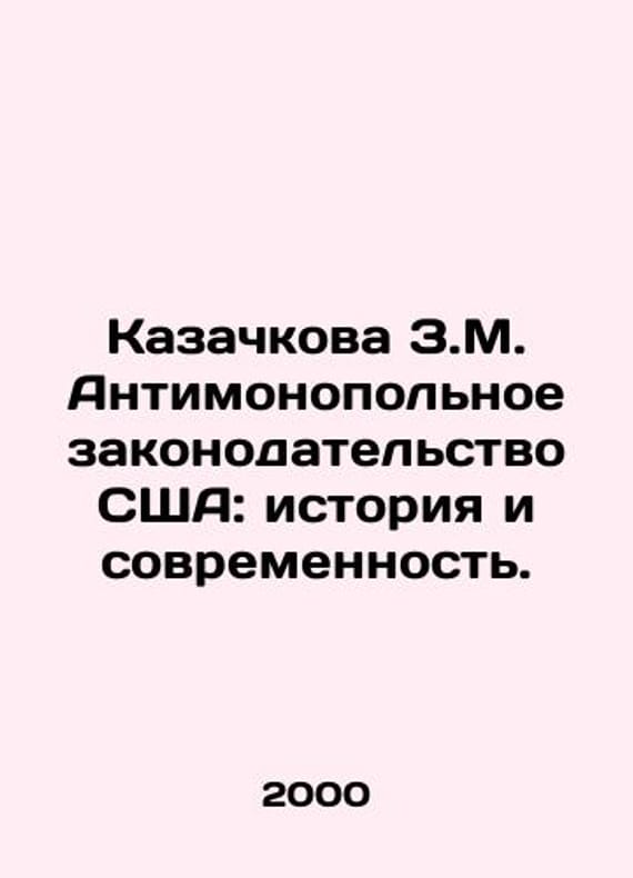 Kazachkova Z.M. US Antitrust Law: Past and Present. In Russian /Kazachkova Z.M. Antimonopolnoe zakonodatelstvo SShA: istoriya i sovremennost. In Russian. Stavropol. MSP. 2000. 304 p. We have thousands of titles and often several copies of each title may be available. Please feel free to contact us for a detailed description of the copies available. SKUalb886d00727beaad82