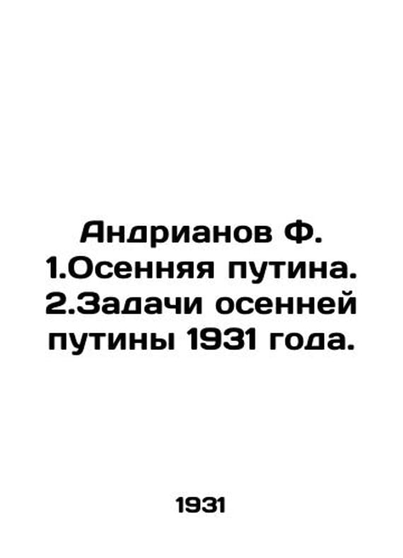 Andrianov F. 1. Autumn Putina. 2. Tasks of Autumn Putina 1931. In Russian /Andrianov F. 1.Osennyaya putina. 2.Zadachi osenney putiny 1931 goda. Moscow-Leningrad SNABKOOPGIZ 1931. We have thousands of titles and often several copies of each title may be available. Please feel free to contact us for a detailed description of the copies available. SKUalb888b4cfb67b0c845.