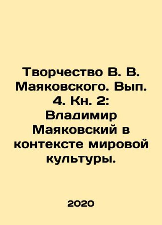 The Creativity of V. V. Mayakovsky. Volume 4. Book 2: Vladimir Mayakovsky in the Context of World Culture. In Russian /Tvorchestvo V. V. Mayakovskogo. Vyp. 4. Kn. 2: Vladimir Mayakovskiy v kontekste mirovoy kultury. In Russian. M. IMLI RAN 2020. 720. We have thousands of titles and often several copies of each title may be available. Please feel free to contact us for a detailed description of the copies available. SKUalb8897ba81507ab1ba