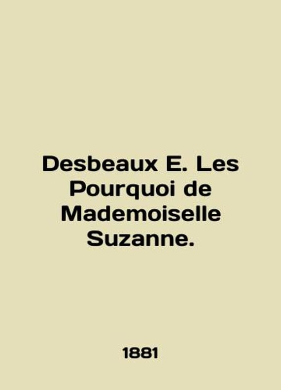 Desbeaux E. Les Pourquoi de Mademoiselle Suzanne. In English /Desbeaux E. Les Pourquoi de Mademoiselle Suzanne. De F. Meaulle Paris Ducrocq, Libraire-editor 1881. We have thousands of titles and often several copies of each title may be available. Please feel free to contact us for a detailed description of the copies available. SKUalb88b63610bf6d6955.