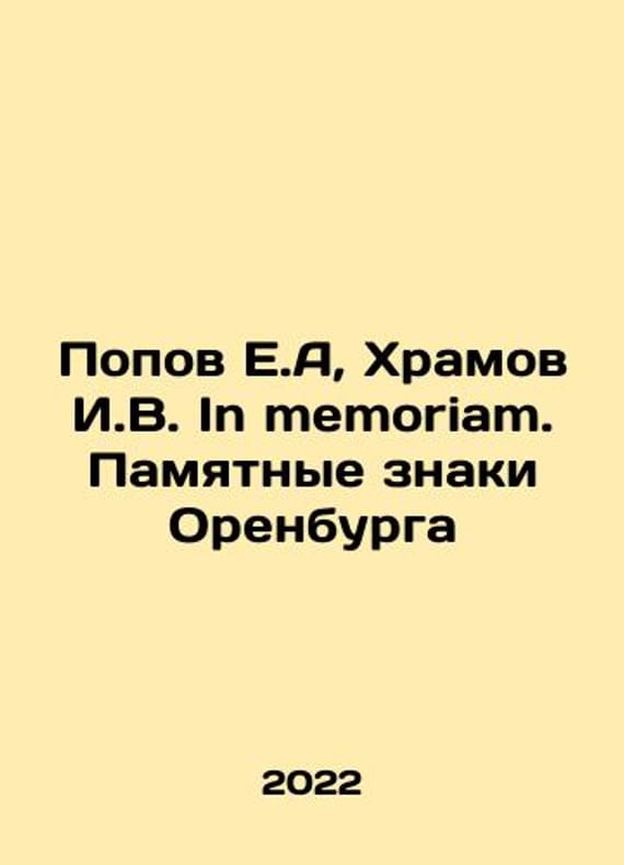 Popov E.A., Khramov I.V. In memoriam. Memorial signs of Orenburg In Russian /Popov E.A, Khramov I.V. In memoriam. Pamyatnye znaki Orenburga In Russian. Orenburg Book Publishing House 2022 200s. We have thousands of titles and often several copies of each title may be available. Please feel free to contact us for a detailed description of the copies available. SKUalb88bd5c18a727f30f