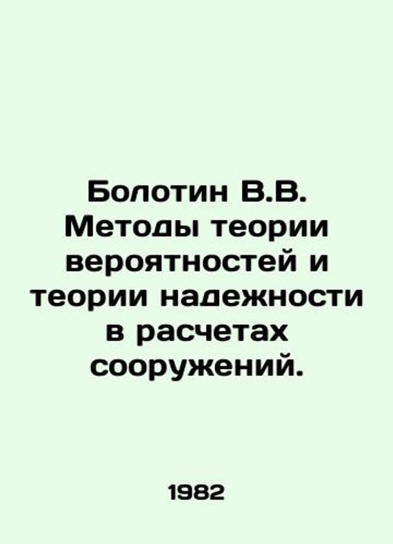 Bolotin V.V. Methods of probability theory and reliability theory in construction calculations. In Russian /Bolotin V.V. Metody teorii veroyatnostey i teorii nadezhnosti v raschetakh sooruzheniy. M. Stroyizdat 1982. We have thousands of titles and often several copies of each title may be available. Please feel free to contact us for a detailed description of the copies available. SKUalb88bfffddb5af7c2b.
