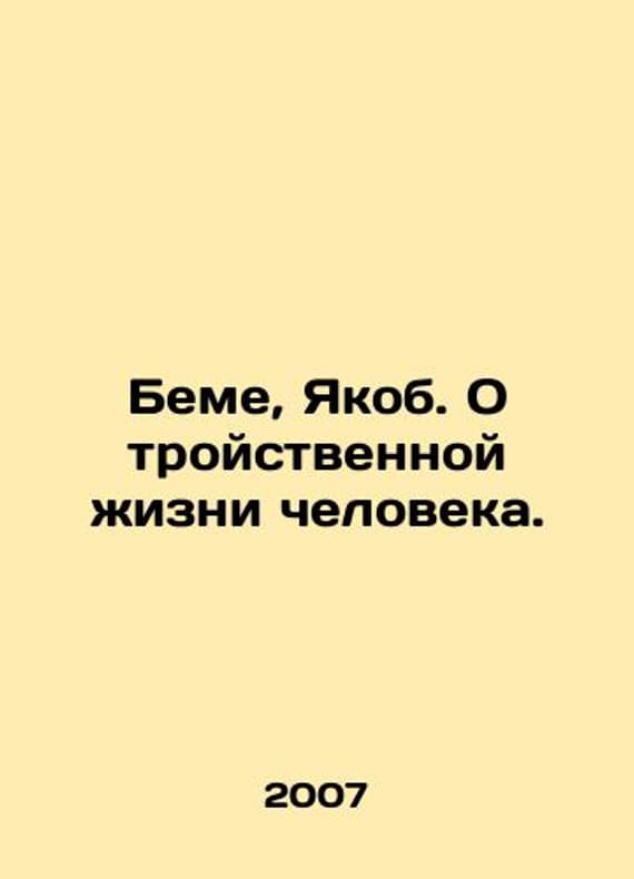 Bem, Jacob. On the triple life of man. In Russian /Beme, Yakob. O troystvennoy zhizni cheloveka. In Russian.DE TRIPLICI VITA HOMINIS or High and Deep Study of the Triple Life of Man. According to the Mystery of the Three Begins of the Divine Revelation. Written on the Divine Enlightenment by Jacob Bem, also called Teutonicus in 1620 We have thousands of titles and often several copies of each title may be available. Please feel free to contact us for a detailed description of the copies available. SKUalb8951d7963e71044e