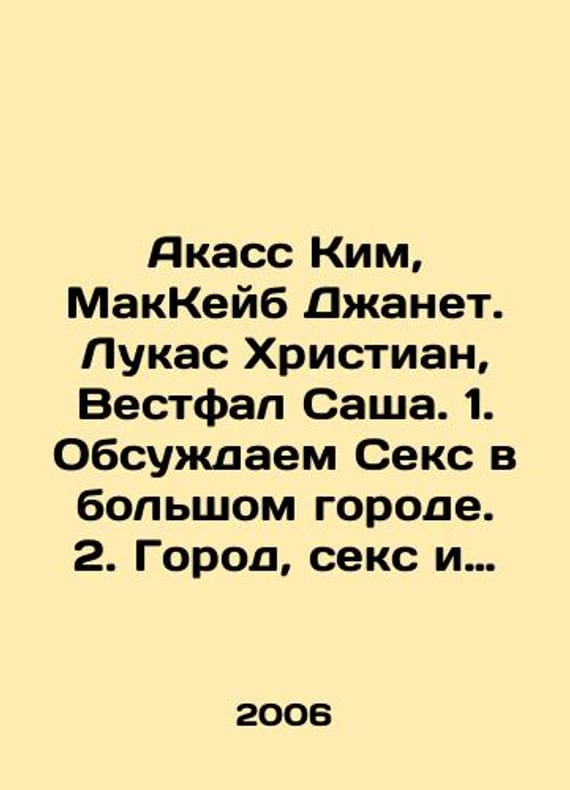 Cash Kim, McCabe Janet. Lucas Christian, Westphal Sasha. 1. Discuss Sex and the City. 2. City, Sex and Women. -2 volumes. In Russian /Akass Kim, MakKeyb Dzhanet. Lukas Khristian, Vestfal Sasha. 1. Obsuzhdaem Seks v bolshom gorode. 2. Gorod, seks i zhenshchiny.-2 toma. In Russian. M. Ad Marginem, Ast. 2006. 315 and 478cc. This book, about the cult series Sex and the City, offers a humorous discussion of each series: all the love affairs of famous girlfriends, their dress styles, and sexual preferences We have thousands of titles and often several copies of each title may be available. Please feel free to contact us for a detailed description of the copies available. SKUalb896896d5d2e758b2