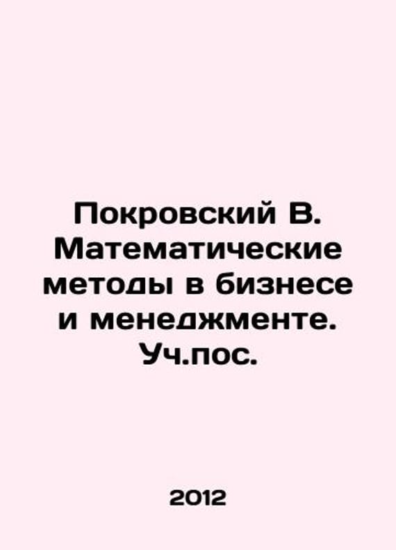 Pokrovsky V. Mathematical Methods in Business and Management In Russian /Pokrovskiy V. Matematicheskie metody v biznese i menedzhmente. Uch.pos. M. LBZ 2012.We have thousands of titles and often several copies of each title may be available. Please feel free to contact us for a detailed description of the copies available. SKUalb8968dc8ebbc6a1f4.