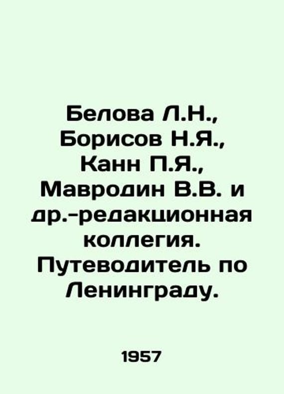 Belova L.N., Borisov N.Ya., Cannes P.Ya., Mavrodin V.V. and others - editorial board. Guide to Leningrad. In Russian /Belova L.N., Borisov N.Ya., Kann P.Ya., Mavrodin V.V. i dr.-redaktsionnaya kollegiya. Putevoditel po Leningradu. In Russian. Part One. Leningrad. Overview. Part Two. City Routes. Part Three. Suburban Routes. Part Four. City Reference. Lenizdat. 1957. 912s. We have thousands of titles and often several copies of each title may be available. Please feel free to contact us for a detailed description of the copies available. SKUalb89b11c08d9c860f3