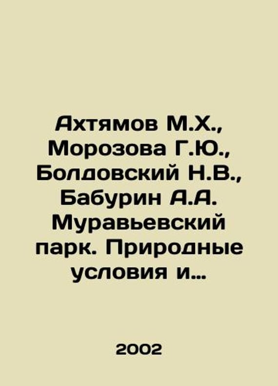 Akhtyamov M.H., Morozova G.Yu, Boldovsky N.V., Baburin A.A. Muravyevsky Park. Natural conditions and vegetation. In Russian /Akhtyamov M.Kh., Morozova G.Yu., Boldovskiy N.V., Baburin A.A. Muravevskiy park. Prirodnye usloviya i rastitelnost.Editor-in-chief: S. M. Smyrensky, Ph.D., M.K. Akhtyamov, Ph.D., Institute of Water and Ecological Problems, DVO RAS, Vladivostok DVO RAS, 2002.We have thousands of titles and often several copies of each title may be available. Please feel free to contact us for a detailed description of the copies available. SKUalb89ca18c8d1a947e8.