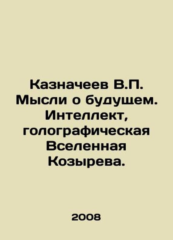 Treasurers V.P. Thoughts on the future. Intelligence, the holographic universe of Kozyrev. In Russian /Kaznacheev V.P. Mysli o budushchem. Intellekt, golograficheskaya Vselennaya Kozyreva. In Russian. Novosibirsk. Siberian Scientific Publishing House. 2008. 192 pp. We have thousands of titles and often several copies of each title may be available. Please feel free to contact us for a detailed description of the copies available. SKUalb89fcb28fc8eab732