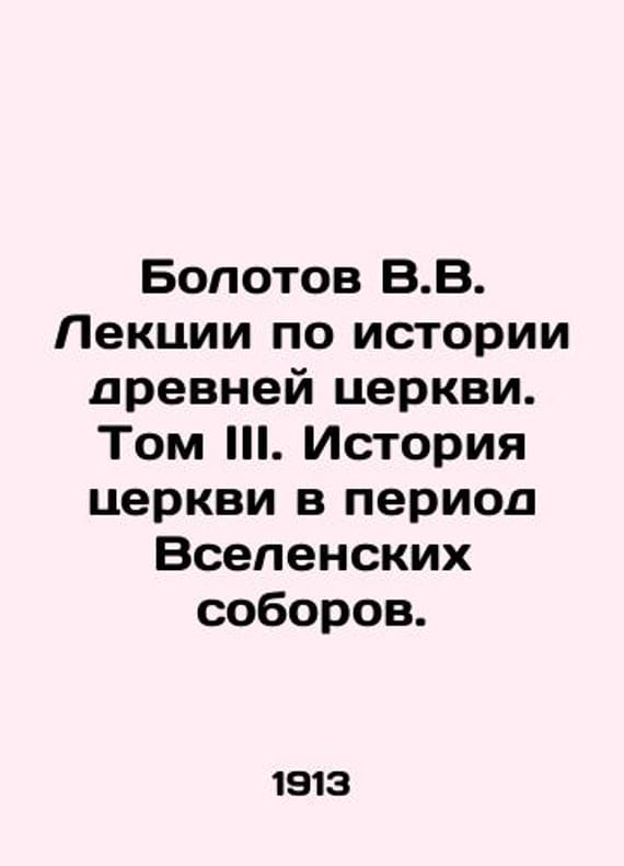 Bolotov V.V. Lectures on the History of the Ancient Church. Volume III. History of the Church in the Period of Ecumenical Councils. In Russian /Bolotov V.V. Lektsii po istorii drevney tserkvi. Tom III. Istoriya tserkvi v period Vselenskikh soborov. In Russian. 1. Church and state. 2. Tserkhodnaya stroy. St. Petersburg Printing House by M.Merkushev. 1913. 340s. We have thousands of titles and often several copies of each title may be available. Please feel free to contact us for a detailed description of the copies available. SKUalb8a3cd61a20c6c4db