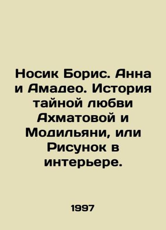 Nose Boris. Anna and Amadeo. The Secret Love Story of Akhmatova and Modigliani, or Drawing in the Interior. In Russian /Nosik Boris. Anna i Amadeo. Istoriya taynoy lyubvi Akhmatovoy i Modilyani, ili Risunok v interere.The Documentary Story. M. Raduga. 1997.We have thousands of titles and often several copies of each title may be available. Please feel free to contact us for a detailed description of the copies available. SKUalb8a480fb14b1f22f1.