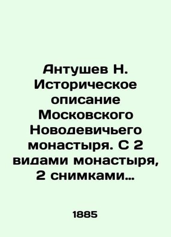 Antushev N. Historical description of the Moscow Novodevichy Monastery. With 2 views of the monastery 2 pictures of ancient icons and 2 portraits In Russian (ask us if in doubt)/Antushev N. Istoricheskoe opisanie Moskovskogo Novodevichego monastyrya. S 2 vidami monastyrya 2 snimkami drevnikh ikon i 2 portretami Short description: In Russian (ask us if in doubt).M. Type L.F. Snegireva 1885 26x17 cm. We have thousands of titles and often several copies of each title may be available. Please feel free to contact us for a detailed description of the copies available. SKUalb8a5fa7dea739bb02