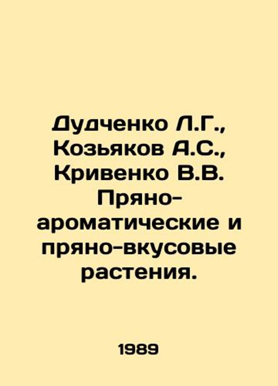 Dudchenko L.G., Kozyakov A.S., Krivenko V.V. Spicy-aromatic and spicy-flavored plants. In Russian /Dudchenko L.G., Kozyakov A.S., Krivenko V.V. Pryano-aromaticheskie i pryano-vkusovye rasteniya. In Russian. Reference book. Kyiv Naukova dumka 1989. 304 p. We have thousands of titles and often several copies of each title may be available. Please feel free to contact us for a detailed description of the copies available. SKUalb8a7d849b34e02b0e