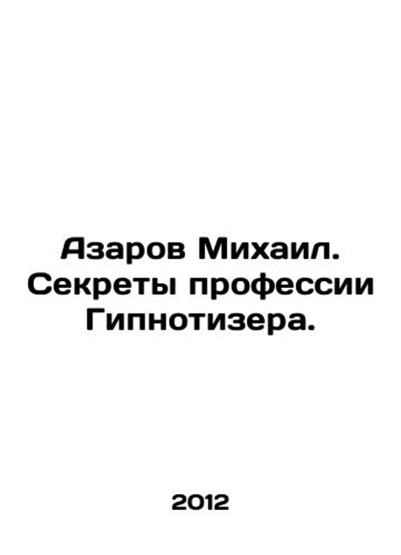 Mikhail Azarov. Secrets of the profession of hypnotist. In Russian /Azarov Mikhail. Sekrety professii Gipnotizera. In Russian. S.-P. Aleteyya. 2012. 312s. We have thousands of titles and often several copies of each title may be available. Please feel free to contact us for a detailed description of the copies available. SKUalb8a7fe2fe91a88965