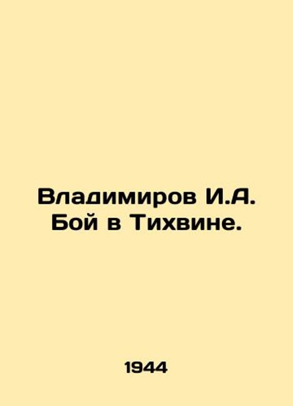 Vladimirov I.A. The Battle in Tikhvin. In Russian /Vladimirov I.A. Boy v Tikhvine. L Art 1944. We have thousands of titles and often several copies of each title may be available. Please feel free to contact us for a detailed description of the copies available. SKUalb8ac70f935c8e098c.