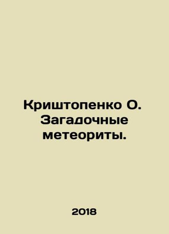 Krishtopenko O. Mysterious meteorites. In Russian /Krishtopenko O. Zagadochnye meteority. In Russian. The fantastic rarity of Yekaterinburg Tardis 2018 # 426 We have thousands of titles and often several copies of each title may be available. Please feel free to contact us for a detailed description of the copies available. SKUalb8ad0111e7f20efb3