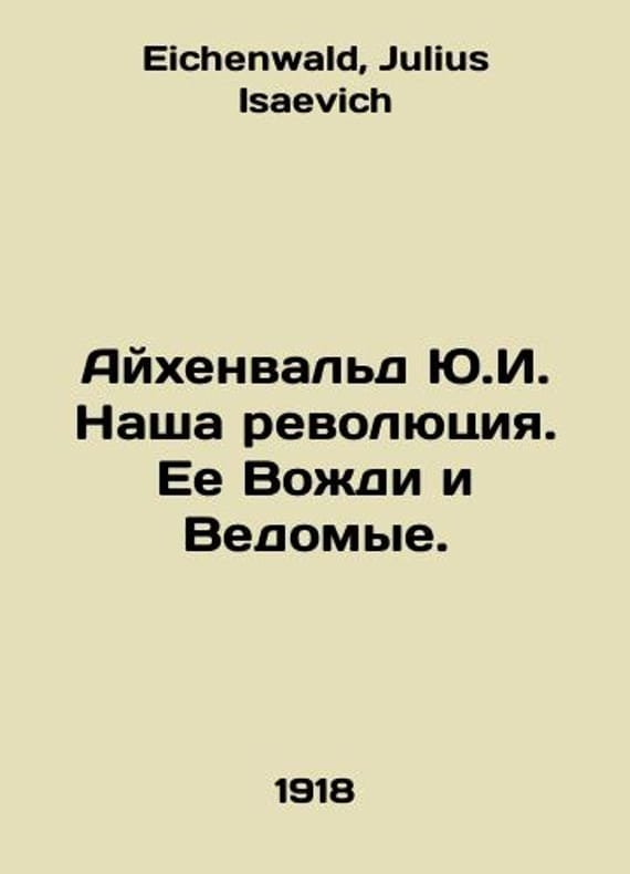 Eichenwald Y.I. Our Revolution. Its Leaders and Led. In Russian /Aykhenvald Yu.I. Nasha revolyutsiya. Ee Vozhdi i Vedomye. M. Revolution and Culture. 1918. 110 p. We have thousands of titles and often several copies of each title may be available. Please feel free to contact us for a detailed description of the copies available. SKUalb8ad4a281a4e08278.