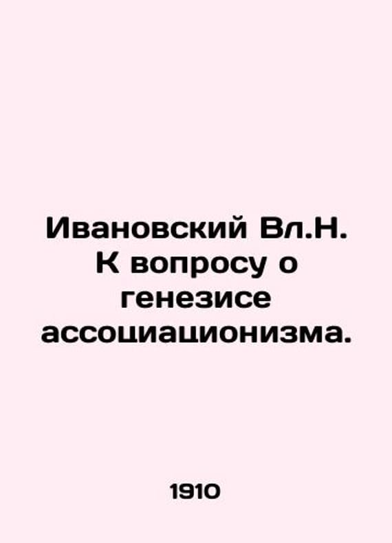 Ivanovsky V.N. On the question of the genesis of associationism. In Russian /Ivanovskiy Vl.N. K voprosu o genezise assotsiatsionizma. In Russian. Speech before the debate). Kazan 1910. 28 p. We have thousands of titles and often several copies of each title may be available. Please feel free to contact us for a detailed description of the copies available. SKUalb8ad87db2f6e08c0d