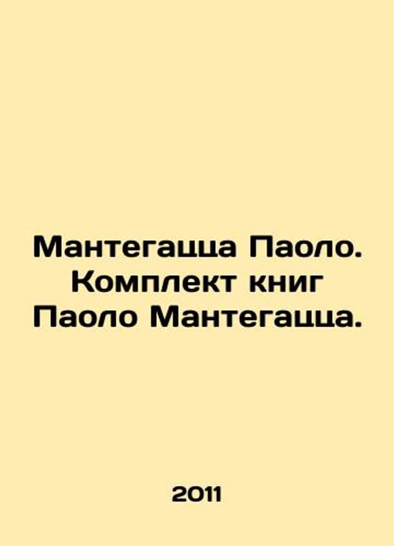 Mantegazza Paolo. Paolo Mantegazza Book Set. In Russian /Mantegatstsa Paolo. Komplekt knig Paolo Mantegatstsa. In Russian. Moscow: Profit-Stiles 2011, 1184 p. We have thousands of titles and often several copies of each title may be available. Please feel free to contact us for a detailed description of the copies available. SKUalb8b39145b88fc6f79