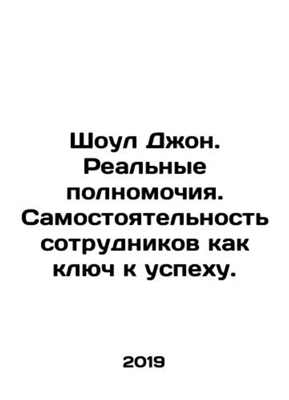 Show John. Real power. Employee autonomy as the key to success. In Russian /Shoul Dzhon. Realnye polnomochiya. Samostoyatelnost sotrudnikov kak klyuch k uspekhu. In Russian. M Alpina Publisher. 2019 152 pp. We have thousands of titles and often several copies of each title may be available. Please feel free to contact us for a detailed description of the copies available. SKUalb8b468da0c7f49712