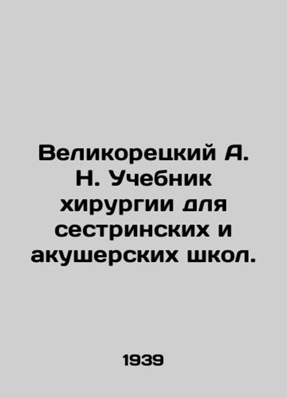 Velikoretsky A.N. Surgery Textbook for Nursing and Midwifery Schools. In Russian /Velikoretskiy A. N. Uchebnik khirurgii dlya sestrinskikh i akusherskikh shkol. 190 drawings in the text. Moscow-Leningrad Medgiz 1939. We have thousands of titles and often several copies of each title may be available. Please feel free to contact us for a detailed description of the copies available. SKUalb8b48fa89f4250219.