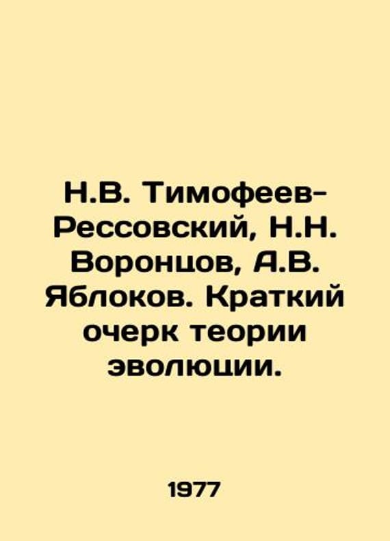 N.V. Timofeev-Ressovsky, N.N. Vorontsov, A.V. Yablokov. Brief sketch of the theory of evolution. In Russian /N.V. Timofeev-Ressovskiy, N.N. Vorontsov, A.V. Yablokov. Kratkiy ocherk teorii evolyutsii.Illustrated Edition. M. Science. 1977.We have thousands of titles and often several copies of each title may be available. Please feel free to contact us for a detailed description of the copies available. SKUalb8b635b4c8036da81.