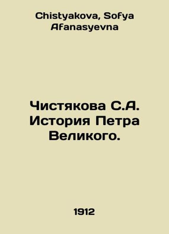 "Chistyakova S.A. The Story of Peter the Great. In Russian /Chistyakova S.A. Istoriya Petra Velikogo. SB 1912 512; 4s. We have thousands of titles and often several copies of each title may be available. Please feel free to contact us for a detailed description of the copies available. SKUalb8bc1dc6065ef2948."