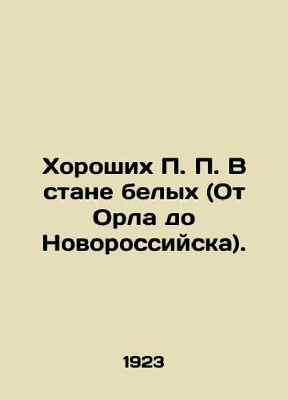 Good P.P. In the White Camp (From Eagle to Novorossiysk). In Russian (ask us if in doubt)/Khoroshikh P. P. V stane belykh (Ot Orla do Novorossiyska).Edition of the East Siberian Blow of the Russian Geographical Society Irkutsk 1923 27 p. We have thousands of titles and often several copies of each title may be available. Please feel free to contact us for a detailed description of the copies available. SKUalb8bc933f1189c475f