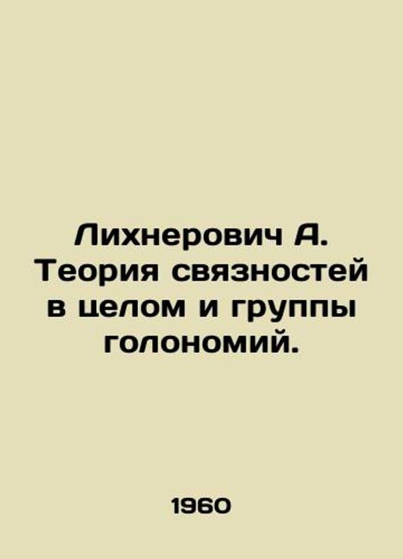 Lickhnerovich A. The theory of connectivity in general and the group of holonomies. In Russian /Likhnerovich A. Teoriya svyaznostey v tselom i gruppy golonomiy. In Russian. Moscow, IL, 1960. 216 p. We have thousands of titles and often several copies of each title may be available. Please feel free to contact us for a detailed description of the copies available. SKUalb8be0fdab1f614605
