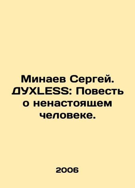 Sergey Minaev. SPUHLESS: A Tale of an Unreal Man. In Russian /Minaev Sergey. DUKhLESS: Povest o nenastoyashchem cheloveke. In Russian. AST MOSCOW: THE STORAGE. 2006 346 (6) p. (ISBN: 5-17-033851-1. 5170338511) SPIRIT is a book about the lost generation of 1970-1976, whose start was so bright and whose life was so wasted. The generation of 1970-1976 was so promising and so promising. We have thousands of titles and often several copies of each title may be available. Please feel free to contact us for a detailed description of the copies available. SKUalb8c3ae7c9985d1c90