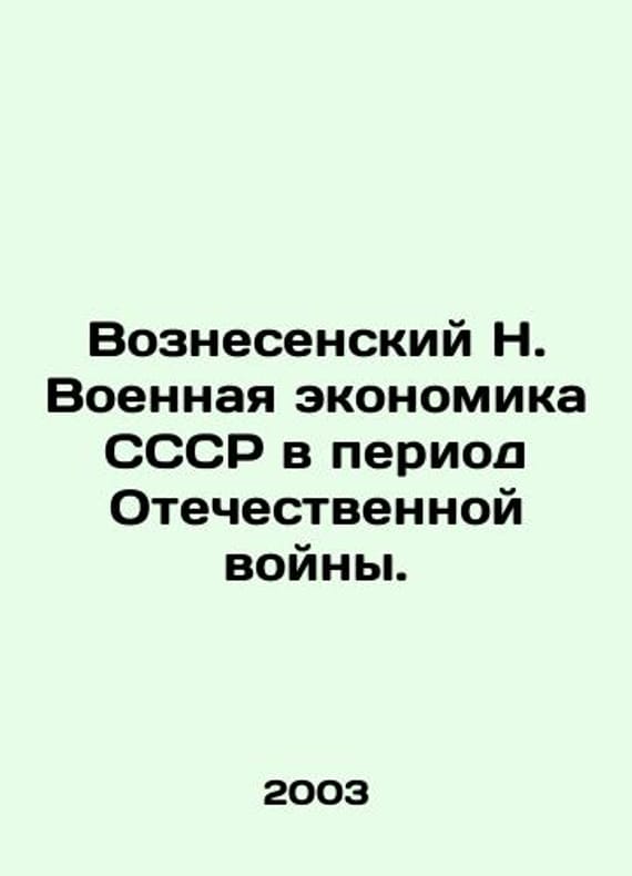 Voznesensky N. Military Economy of the USSR during the Patriotic War. In Russian /Voznesenskiy N. Voennaya ekonomika SSSR v period Otechestvennoy voyny. In Russian. The Economic Gazette 2003. 384 p. We have thousands of titles and often several copies of each title may be available. Please feel free to contact us for a detailed description of the copies available. SKUalb8c862d4c31d025a0