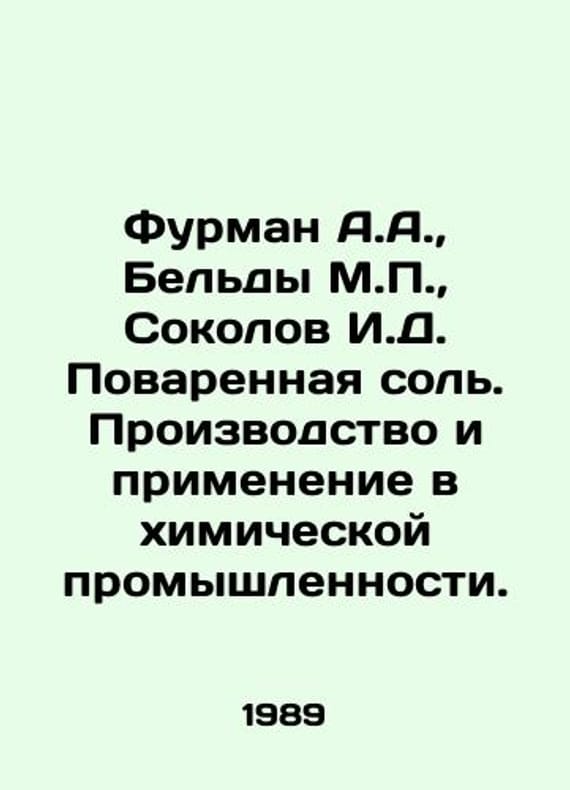 Furman A.A., Beldy M.P., Sokolov I.D. Cooked salt. Production and application in the chemical industry. In Russian /Furman A.A., Beldy M.P., Sokolov I.D. Povarennaya sol. Proizvodstvo i primenenie v khimicheskoy promyshlennosti. In Russian. Under the editorship of Sokolov I. D. M. Chemistry 1989. 272 p. We have thousands of titles and often several copies of each title may be available. Please feel free to contact us for a detailed description of the copies available. SKUalb8ce8d6e20460f724