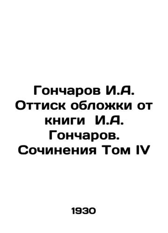 Goncharov I.A. Cover from the book by I.A. Goncharov. Works Volume IV In Russian /Goncharov I.A. Ottisk oblozhki ot knigi I.A. Goncharov. Sochineniya Tom IV State Publishing House. 1930. We have thousands of titles and often several copies of each title may be available. Please feel free to contact us for a detailed description of the copies available. SKUalb8d2824bcdd81c60e.