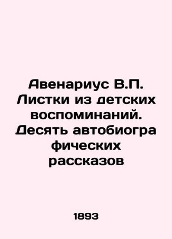 Avenarius V.P. Leaflets from childhood memories. Ten autobiographical stories In Russian /Avenarius V.P. Listki iz detskikh vospominaniy. Desyat avtobiograficheskikh rasskazov In Russian. St. Petersburg Typography of the Partnership Public Benefit 1893. 240c. We have thousands of titles and often several copies of each title may be available. Please feel free to contact us for a detailed description of the copies available. SKUalb8d56a46fce3ddc2f