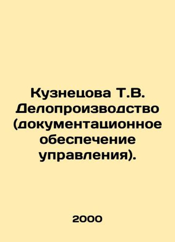 Kuznetsova T.V. Records management (management documentation). In Russian /Kuznetsova T.V. Deloproizvodstvo (dokumentatsionnoe obespechenie upravleniya). M ZAO Intel-Sintez Business School 2000.We have thousands of titles and often several copies of each title may be available. Please feel free to contact us for a detailed description of the copies available. SKUalb8d6514d9db56ece6.