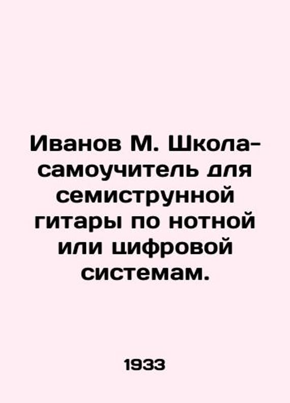 Ivanov M. Self-taught seven-string guitar in music or digital systems. In Russian /Ivanov M. Shkola-samouchitel dlya semistrunnoy gitary po notnoy ili tsifrovoy sistemam. In Russian. M. Muzgiz 1933, 48 pp. We have thousands of titles and often several copies of each title may be available. Please feel free to contact us for a detailed description of the copies available. SKUalb8d6c9be1ca62ce18