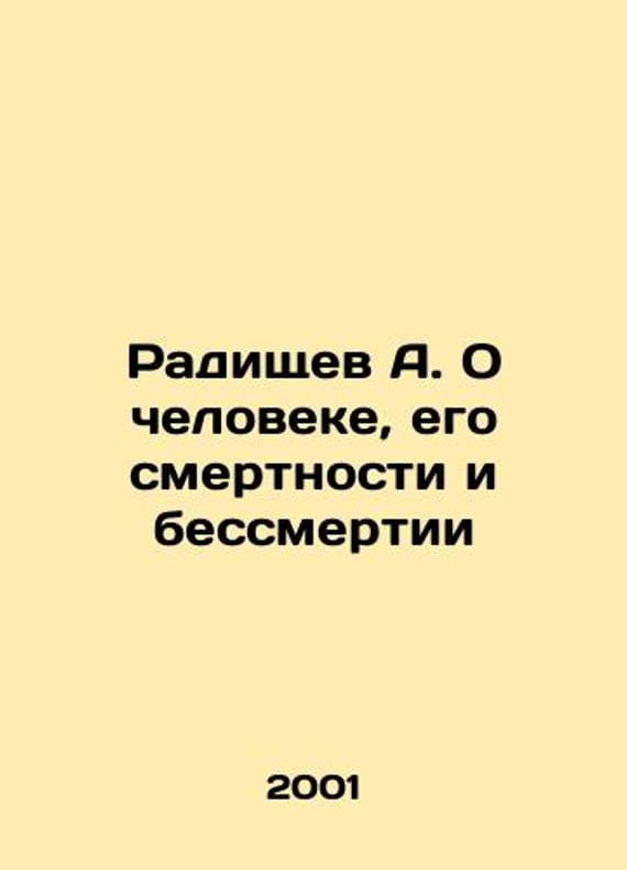 Radishchev A. On Man, His Mortality and Immortality In Russian /Radishchev A. O cheloveke, ego smertnosti i bessmertii In Russian. Psychology-Classics (series) St. Petersburg. Peter 2001. We have thousands of titles and often several copies of each title may be available. Please feel free to contact us for a detailed description of the copies available. SKUalb8d81221e4d501923