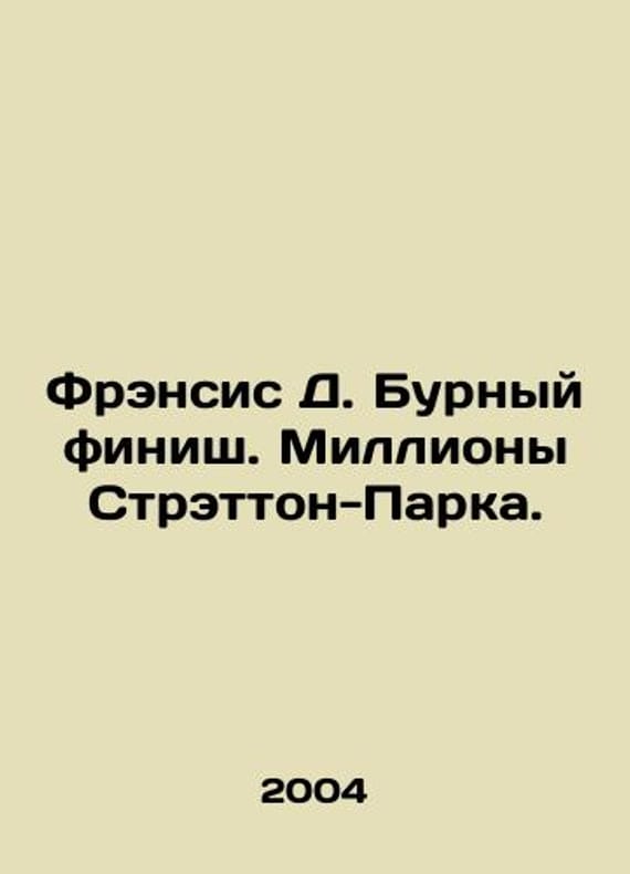 Francis D. A stormy finish. The Millions of Stratton Park. In Russian /Frensis D. Burnyy finish. Milliony Stretton-Parka. The series: The whole Francis M. Eksmo 2004.We have thousands of titles and often several copies of each title may be available. Please feel free to contact us for a detailed description of the copies available. SKUalb8d877ab8e296fb01.
